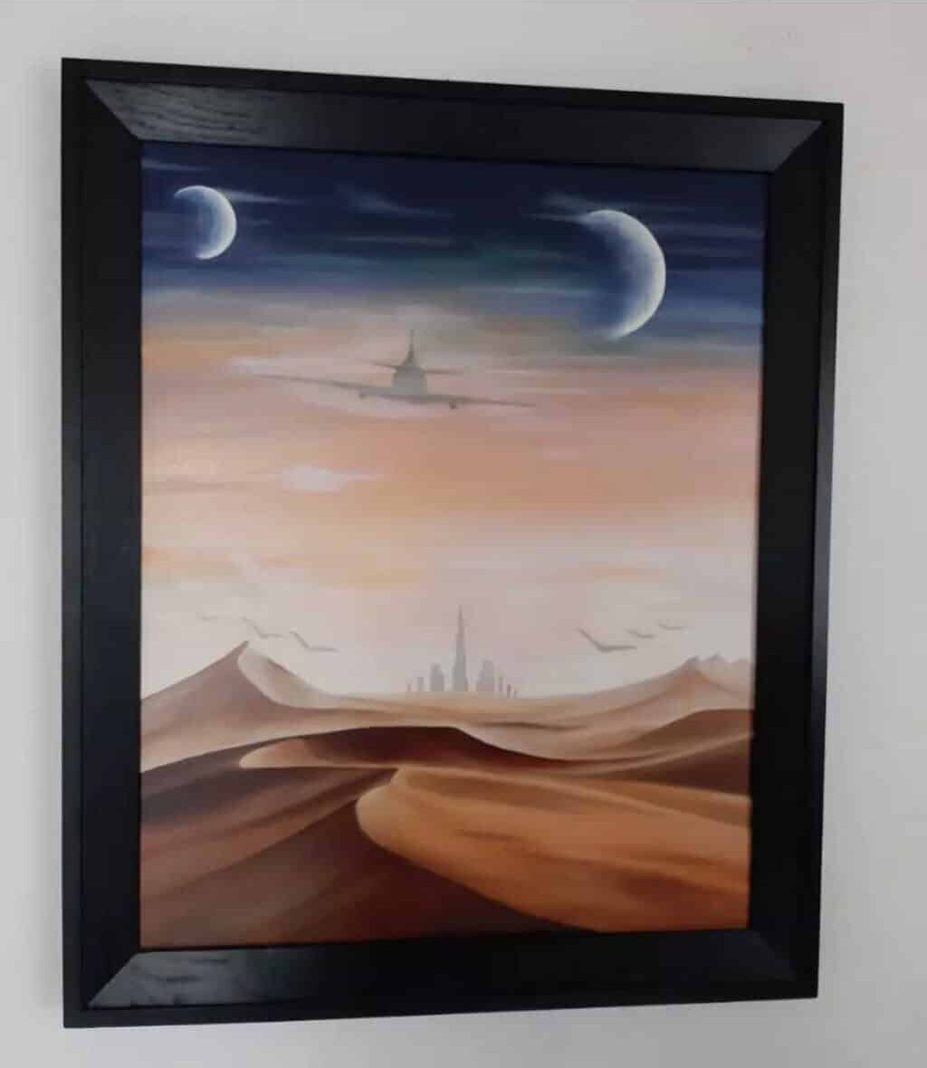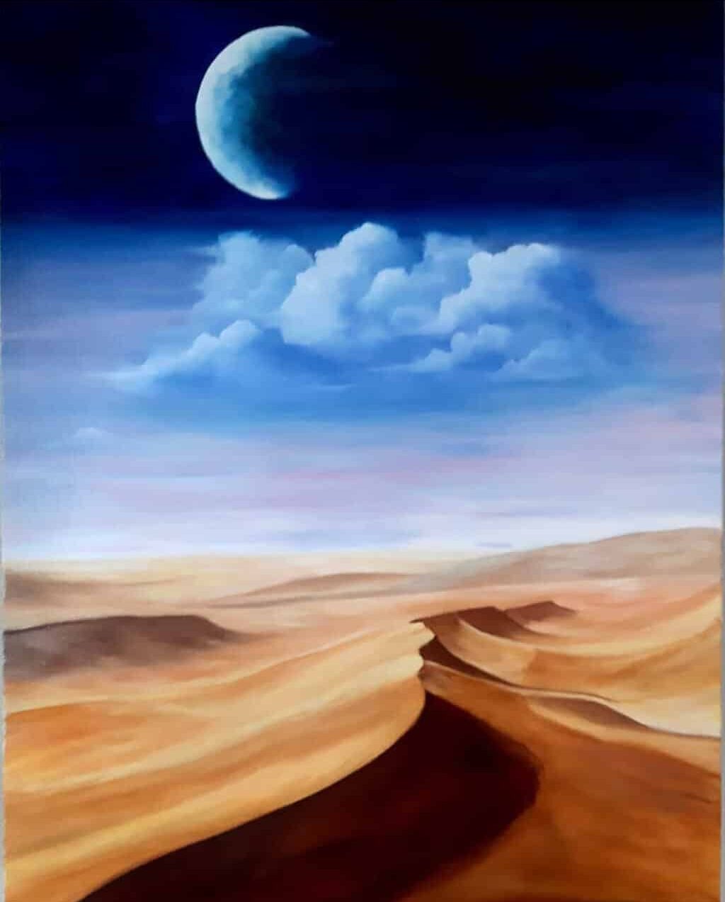 Je peins des paysages qui se dessine dans ma tête je m’évade sans cesse pour trouver le calme, fasciné par l’horizon désertique et l’évasion. J’invente et je crée des paysages où l’on peut se projeter au loin, chacun peut y déposer son idée.