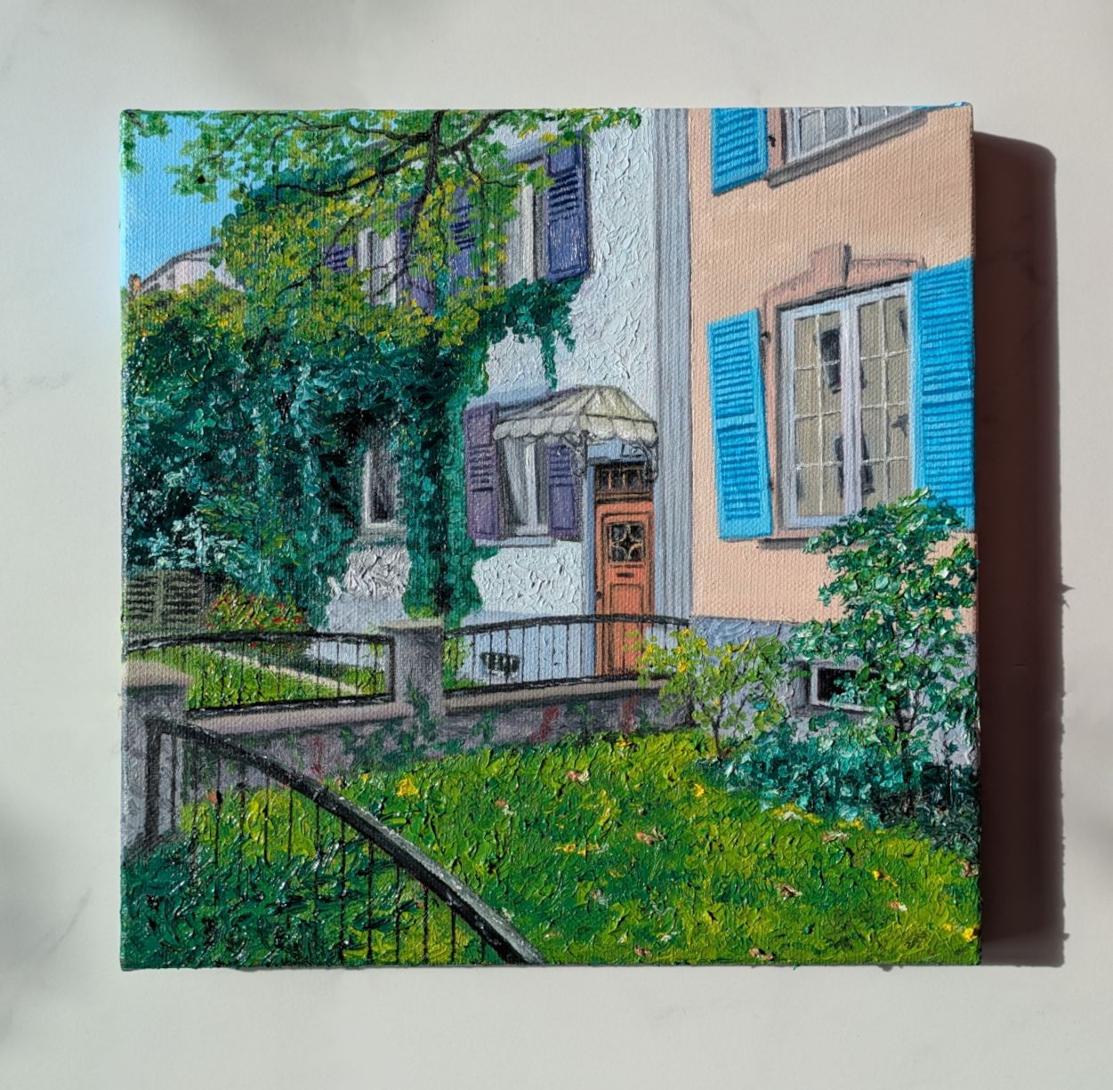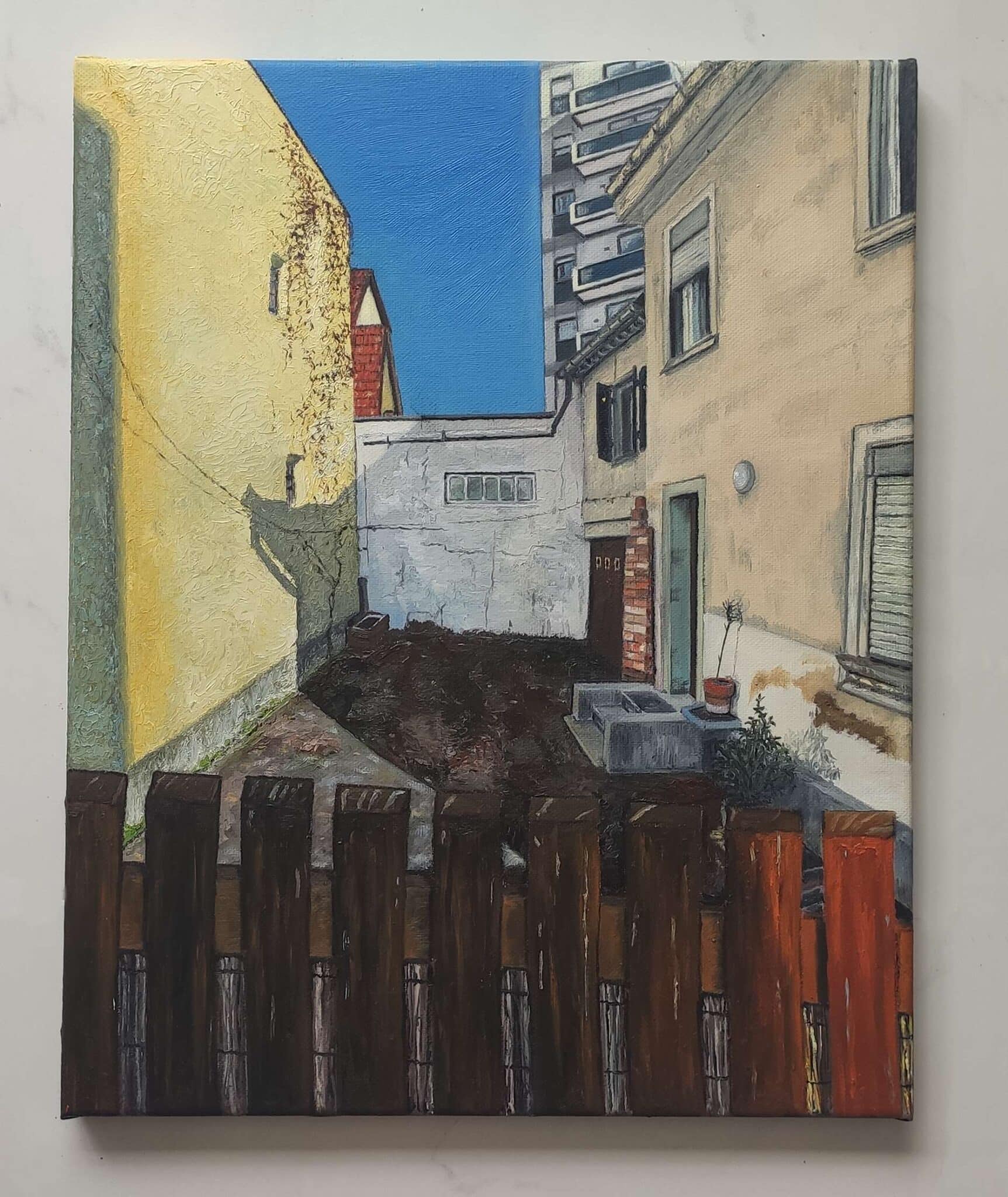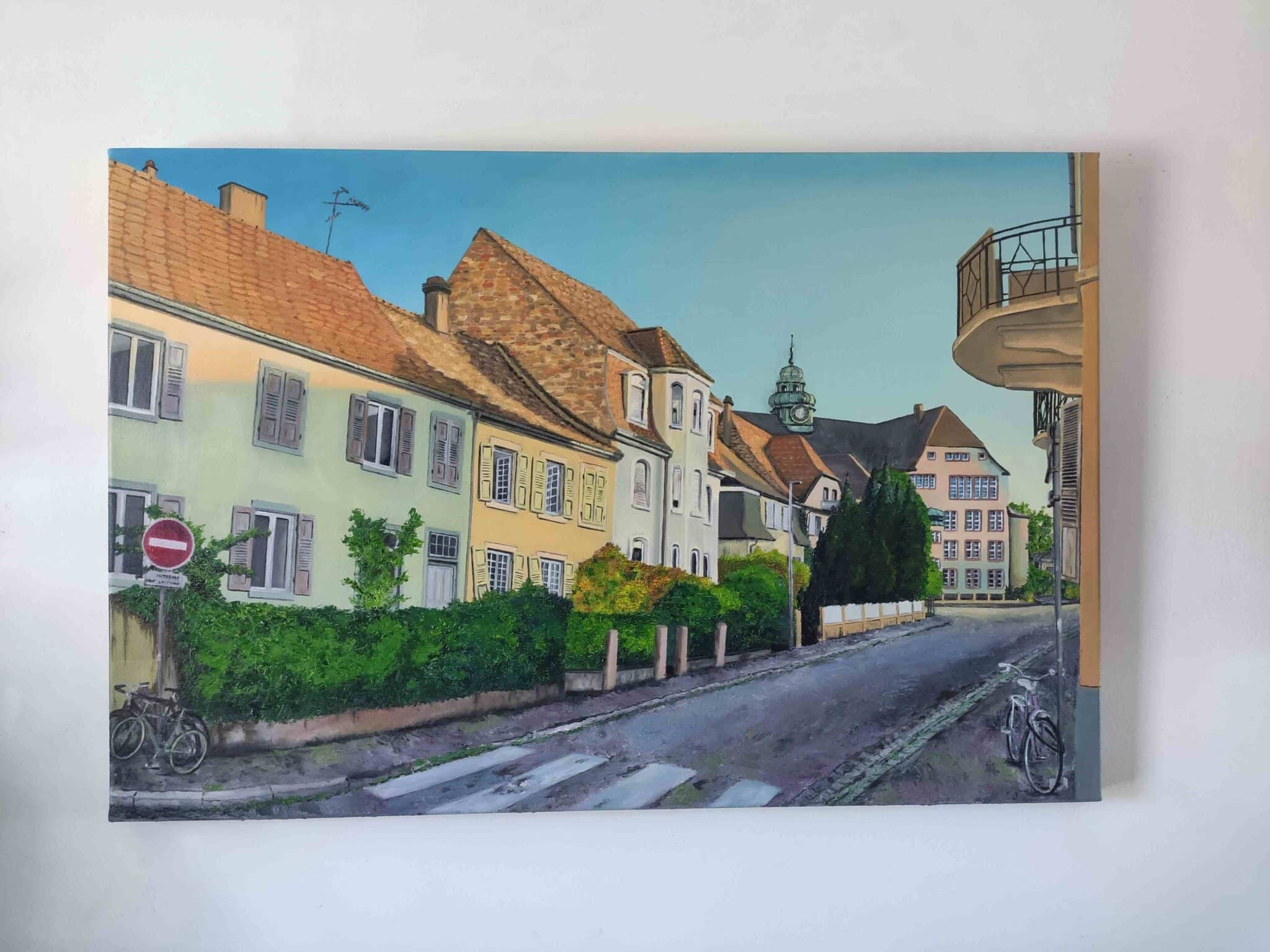 À travers la série Levers de soleil sur Neudorf, je capture l’âme discrète mais poétique du quartier de Strasbourg où je vis et travaille. Mes toiles, réalisées à l’huile, offrent un regard contemplatif sur les rues, les entre-maisons et les paysages urbains, souvent ignorés au premier abord.