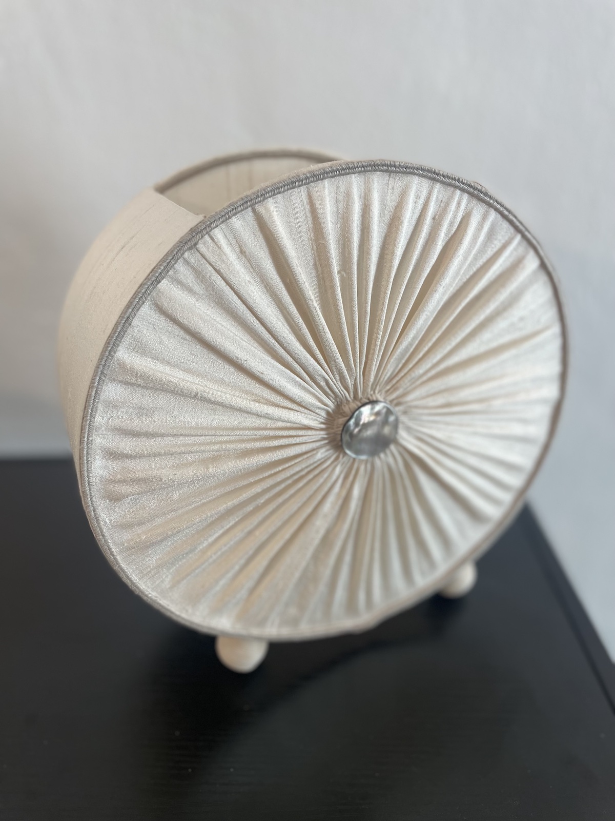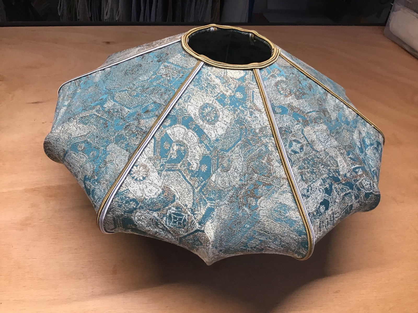 Abat -jour en tissu contrecollé, cousu main, plissé, froncé, la créativité dans ce domaine est illimitée et s’adapte à toutes formes de luminaires