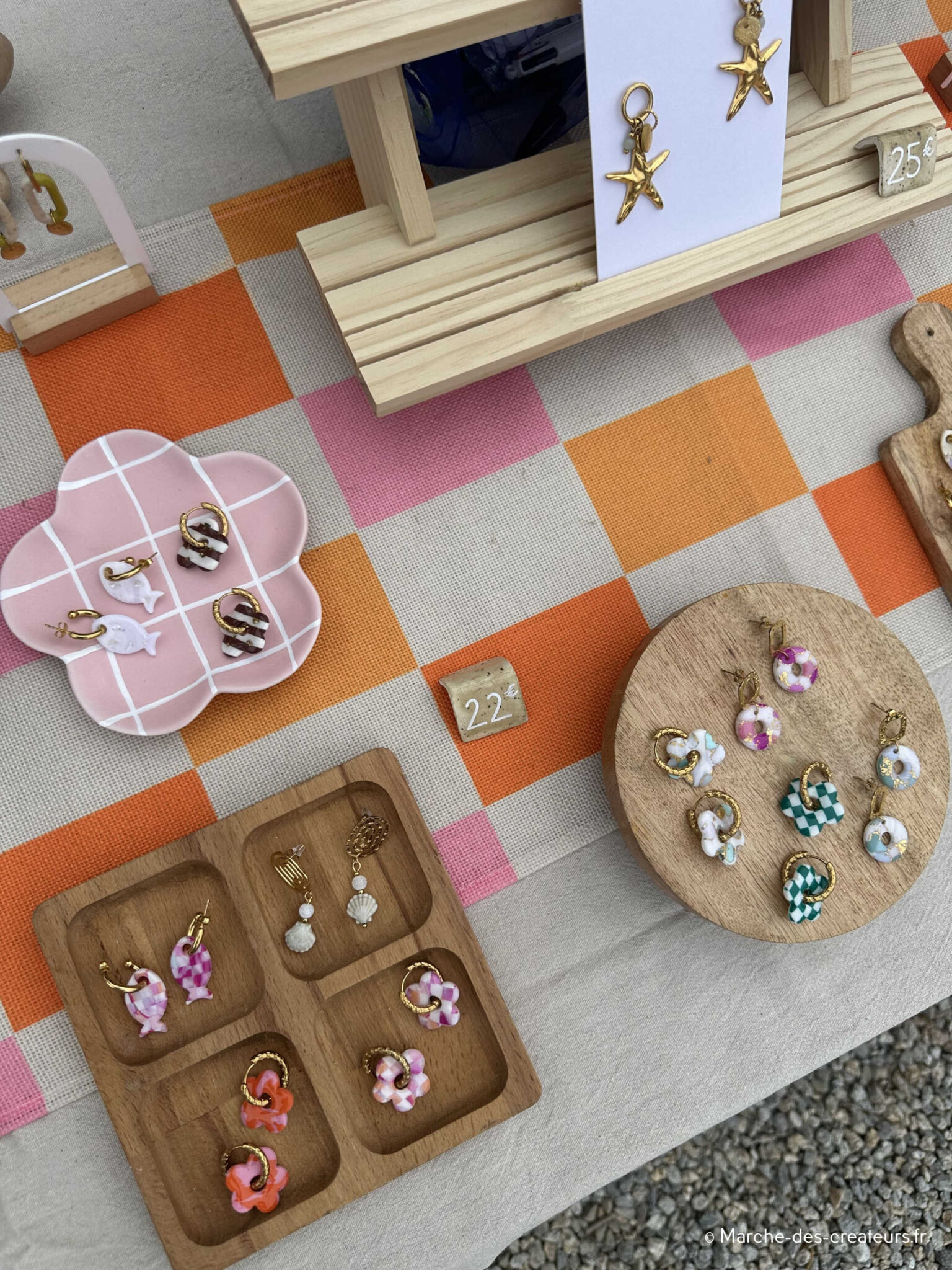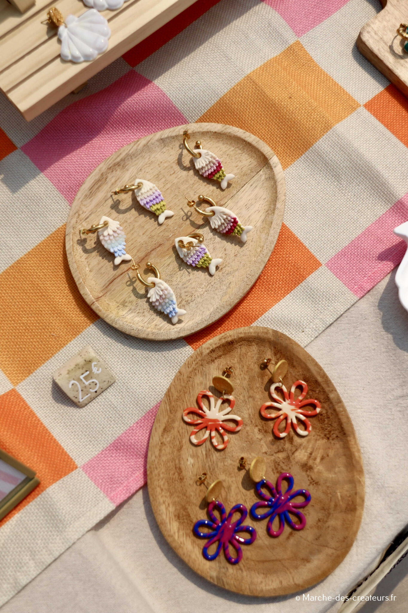 Je suis Marine, créatrice de bijoux colorés, dessinés et réalisés à la main en argile polymère.