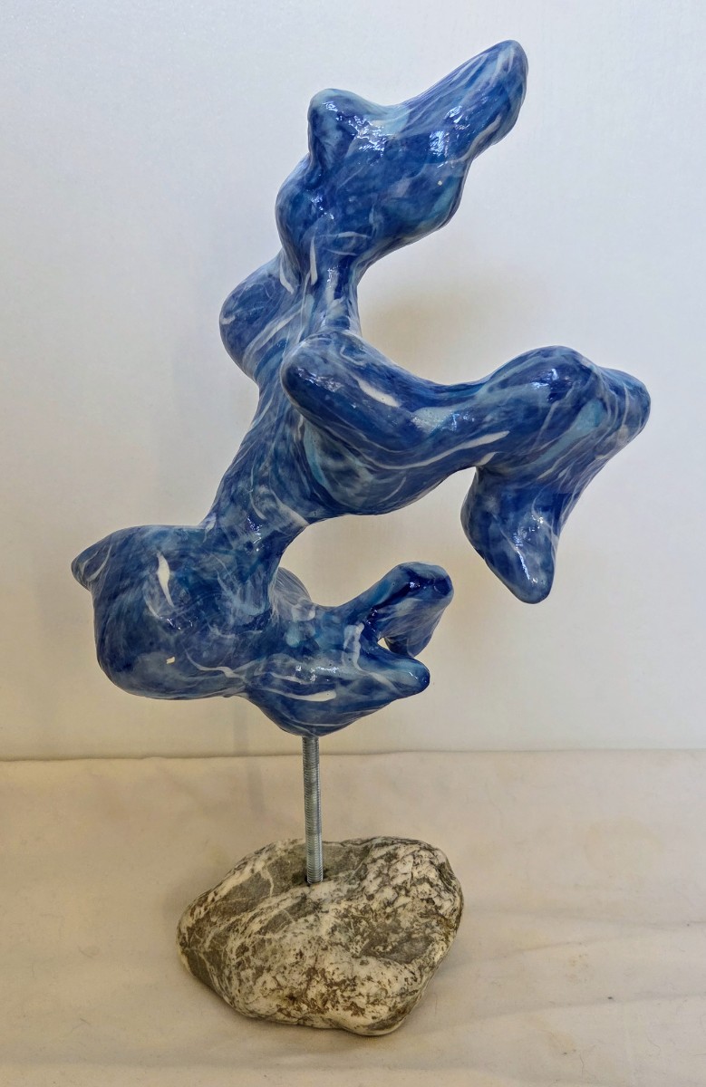 Cette recherche s’étend également au volume à travers des sculptures aux formes organiques, qui prolongent cette exploration du corps et de ses métamorphoses.