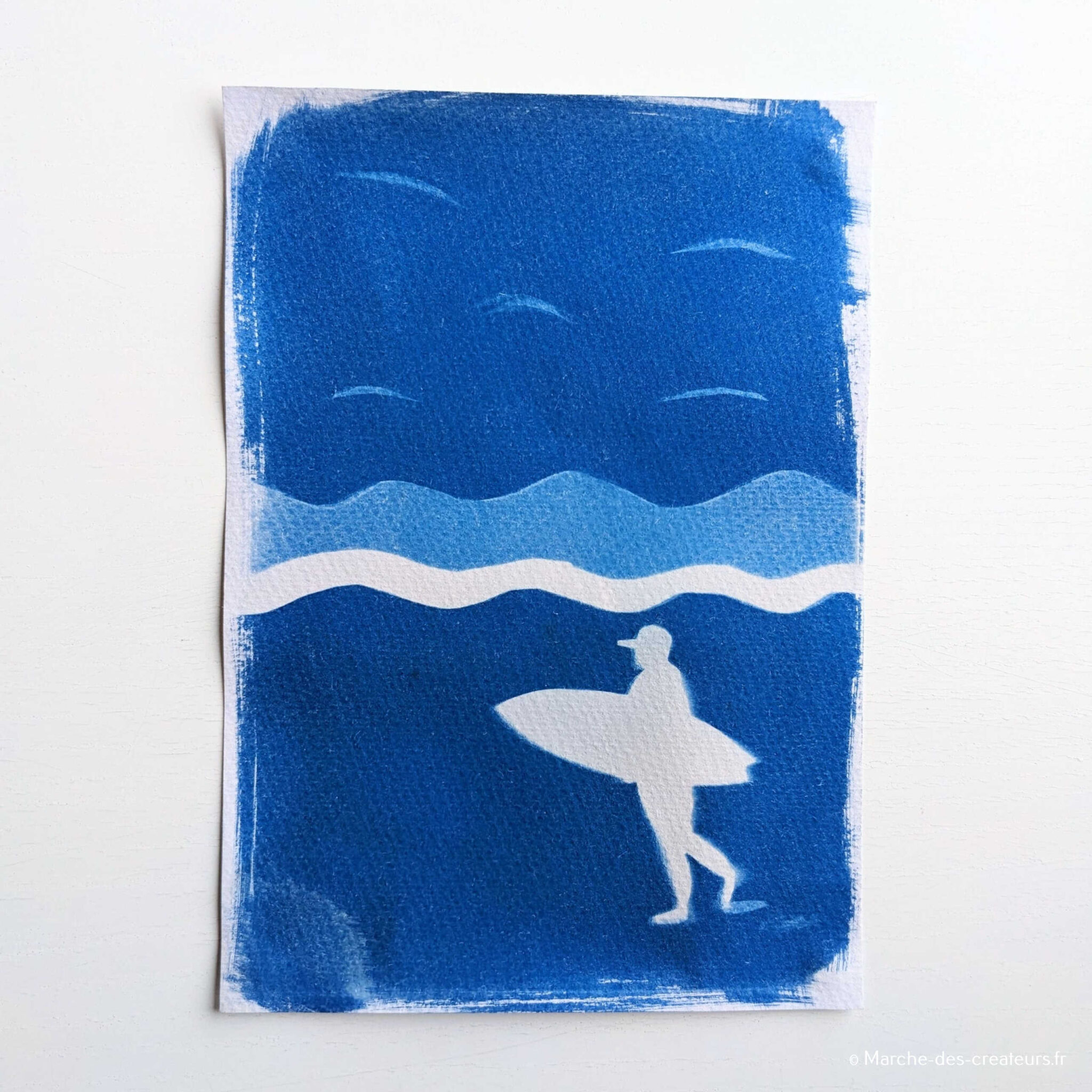 Je suis Marion, alias Blue Mage, artisane de lumière et d’empreintes végétales. Depuis plusieurs années, je pratique le cyanotype, un ancien procédé photographique qui révèle des bleus profonds sous l’effet du soleil.