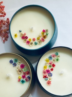 Mon univers se distingue par des créations décoratives et sensorielles : bougies sculpturales, bougies en contenant, compositions florales intégrant des fleurs façonnées en cire ainsi que des fleurs en savon, chacune ayant son esthétique et son usage spécifique.