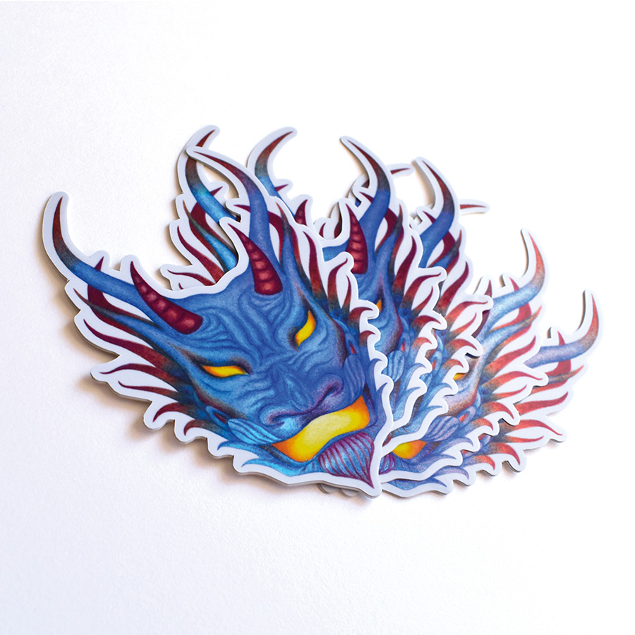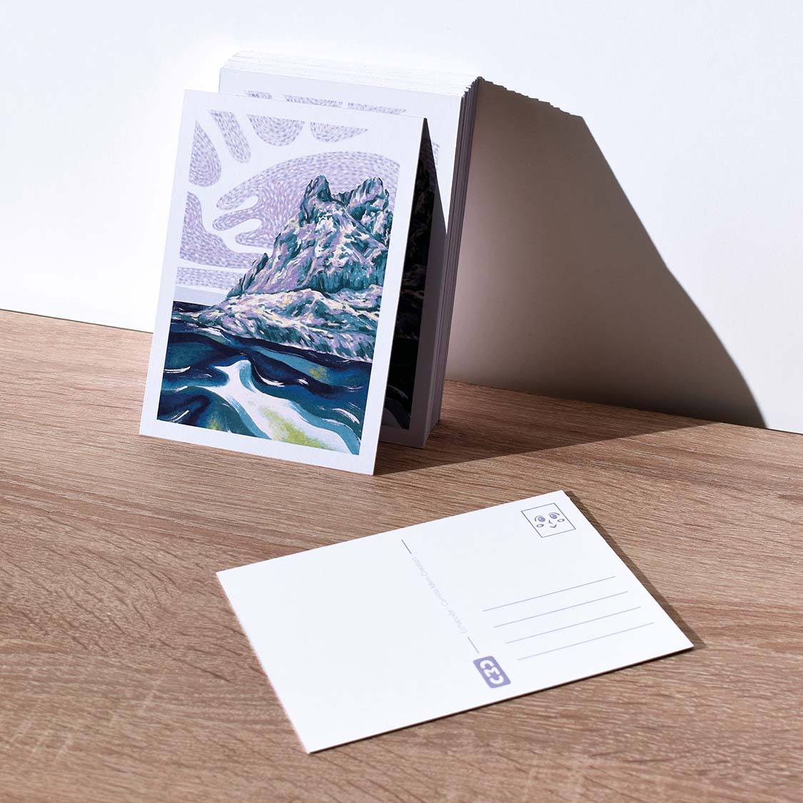 Je crée aussi certains produits tels que des cartes postales en peinture acrylique, des pin’s aux crayons de couleurs, des stickers au stylo bille, etc.