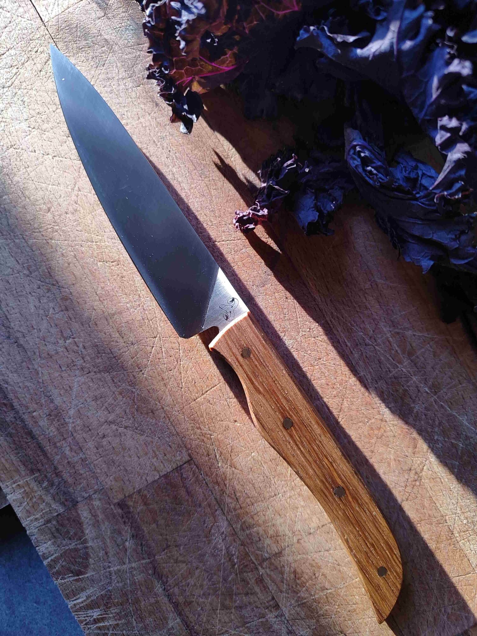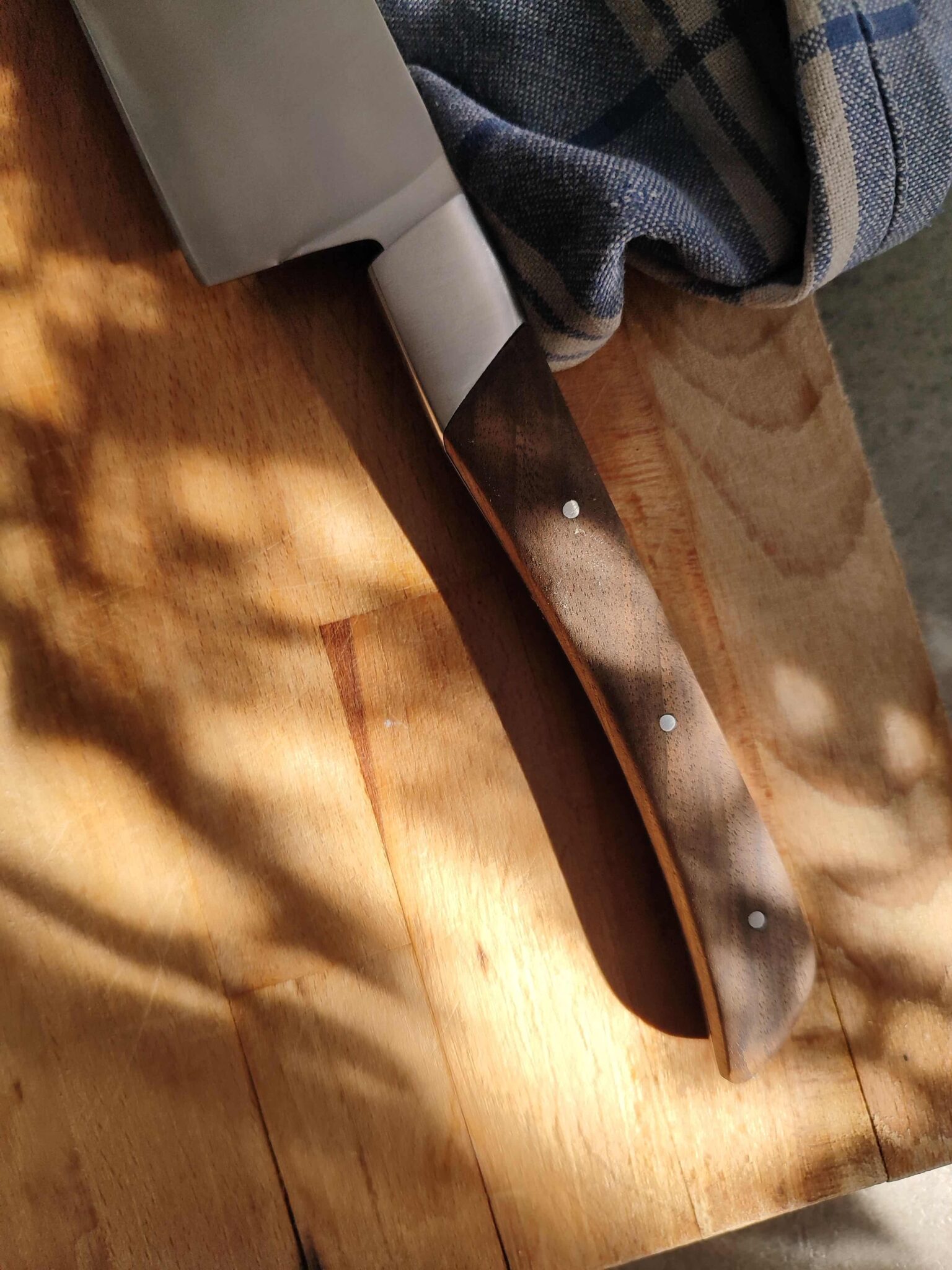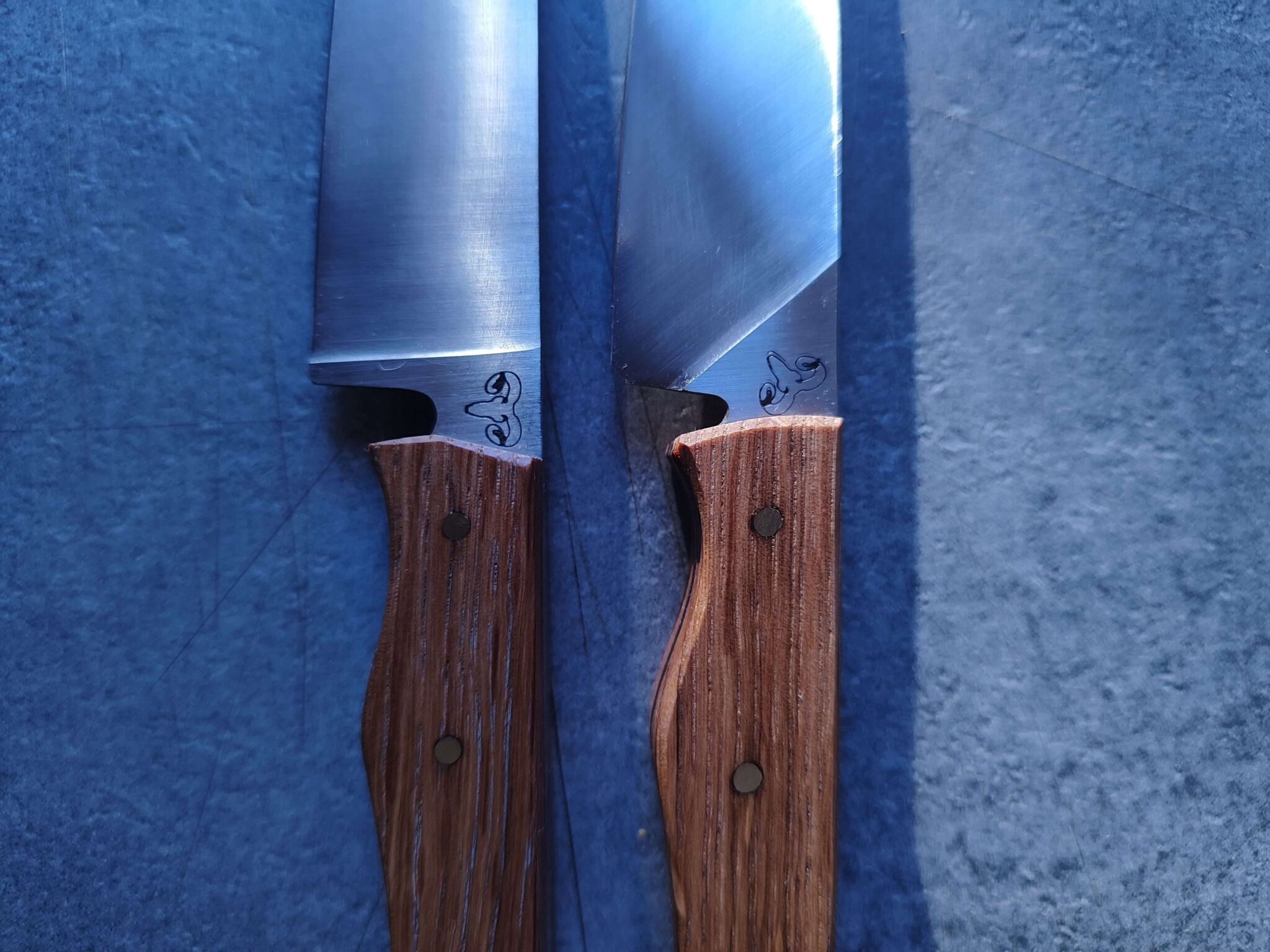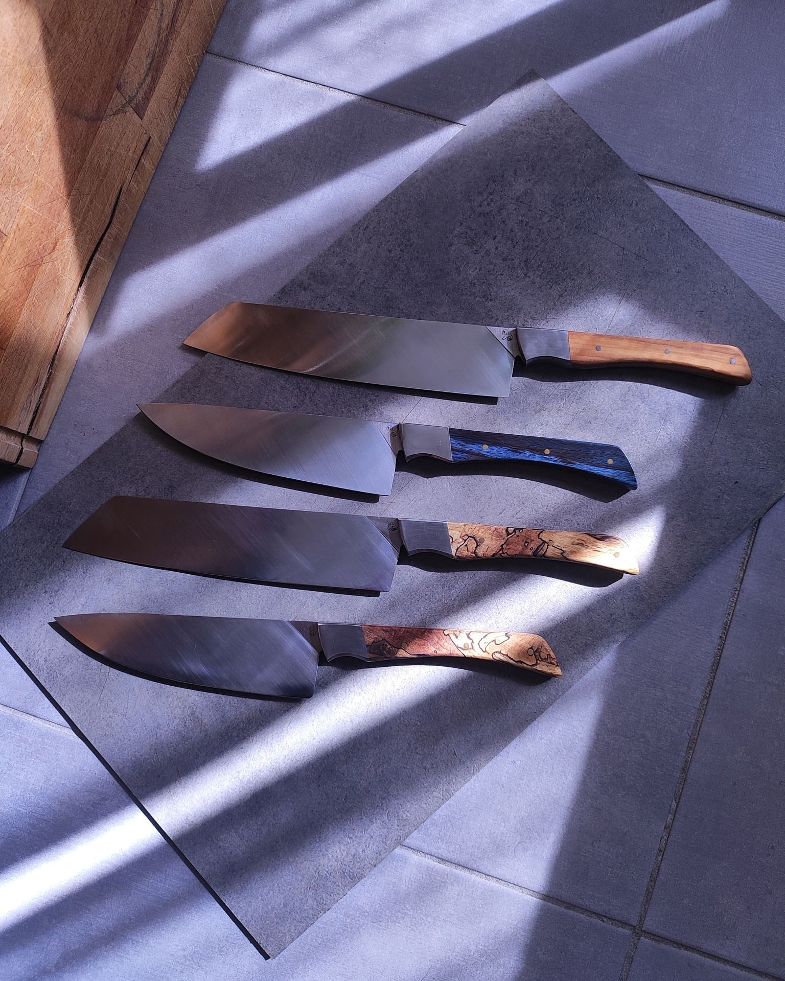 Chaque pièce est entièrement réalisée à la main dans mon atelier situé à Neudorf (Strasbourg). Je fabrique des couteaux en acier inoxydable, parfait pour les cuisiniers et cuisinières amateurs comme pour les professionnels. Mes couteaux sont garantis à vie, et l’affûtage y est inclus : je suis convaincu qu’un outil bien fait est un outil fait pour durer.