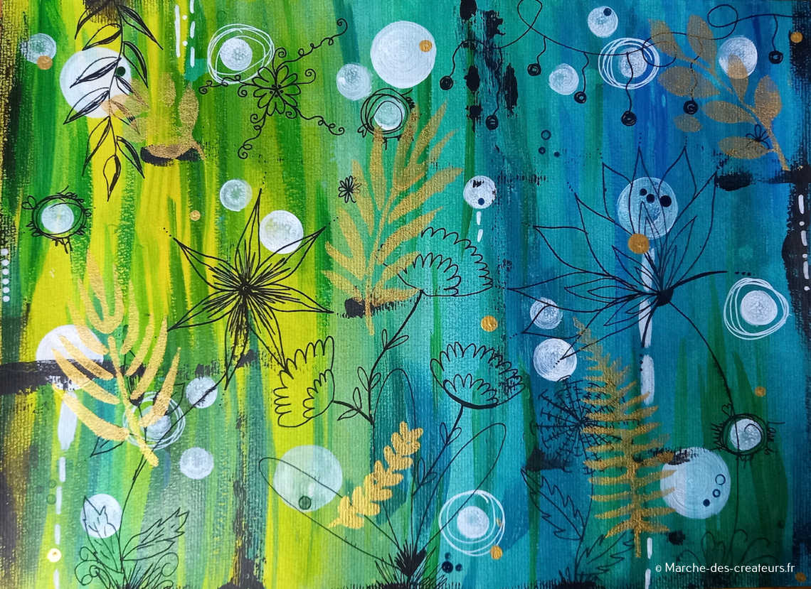 Je peins et/ou dessine également des peintures intuitives, à l’aquarelle ou à l’acrylique, sur toile ou sur papier. Les couleurs et les formes qui se révèlent petit à petit parlent à notre subconscient et les oeuvres avec lesquelles on résonne font vibrer notre coeur pour notre plus grand bien.