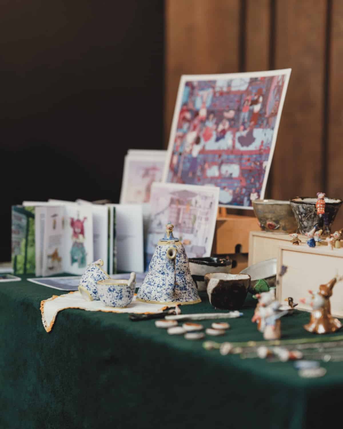 Petit à petit, les villages se sont déclinés en objets décoratifs, les petits bonhommes se sont perchés sur des tasses, bols, se baladent au cou et aux oreilles de quelques personnes…