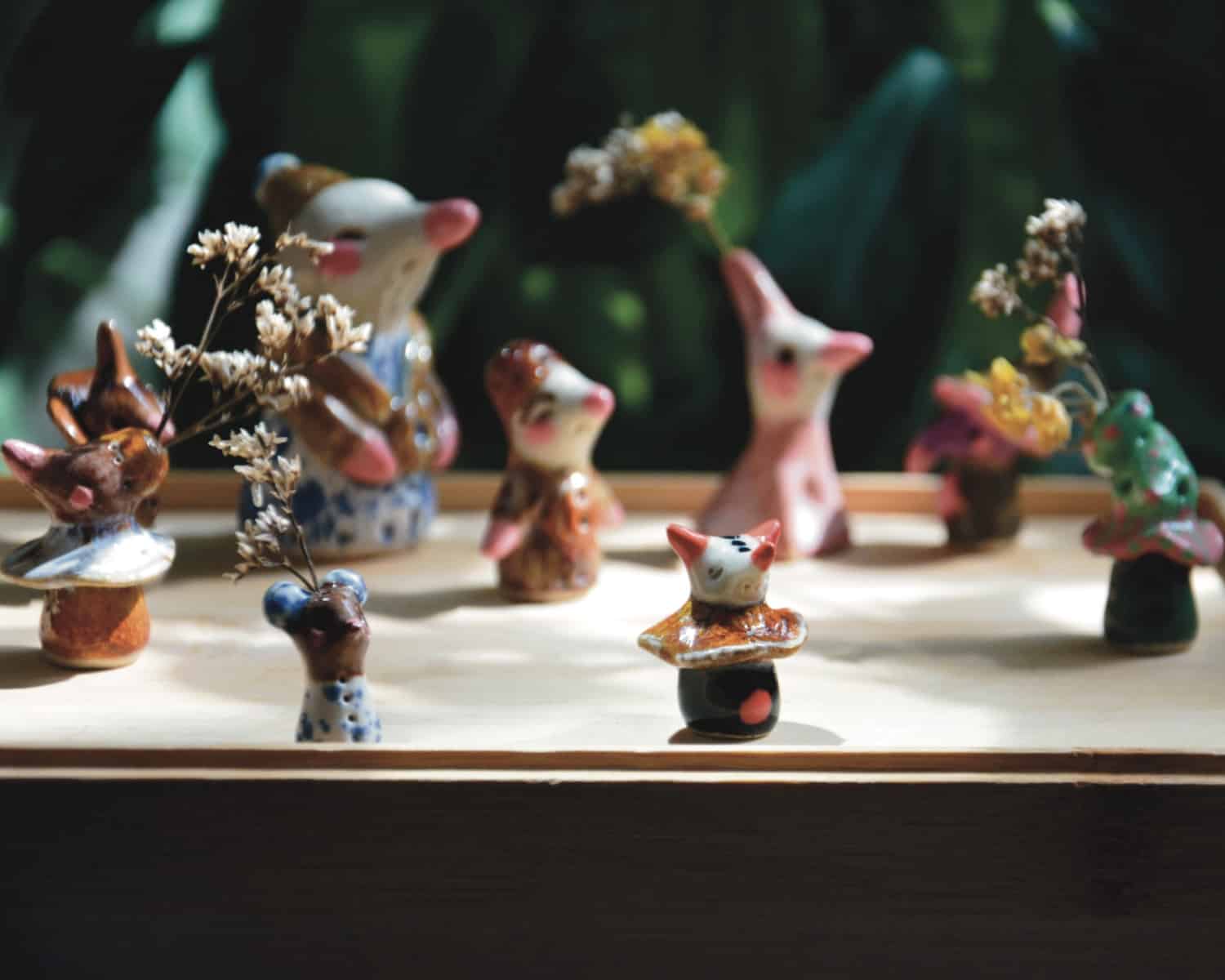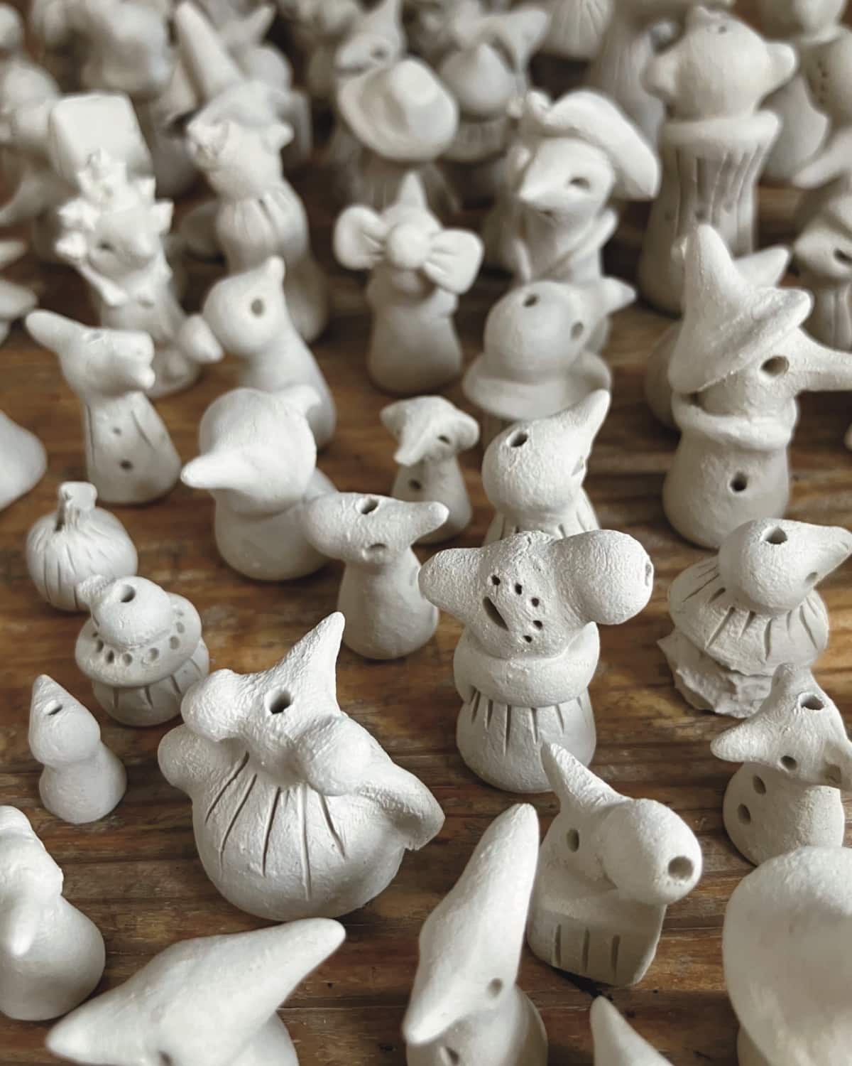 J’ai commencé la céramique en faisant des installations de petits villages accrochés sur des branches, peuplés de petits bonhommes.