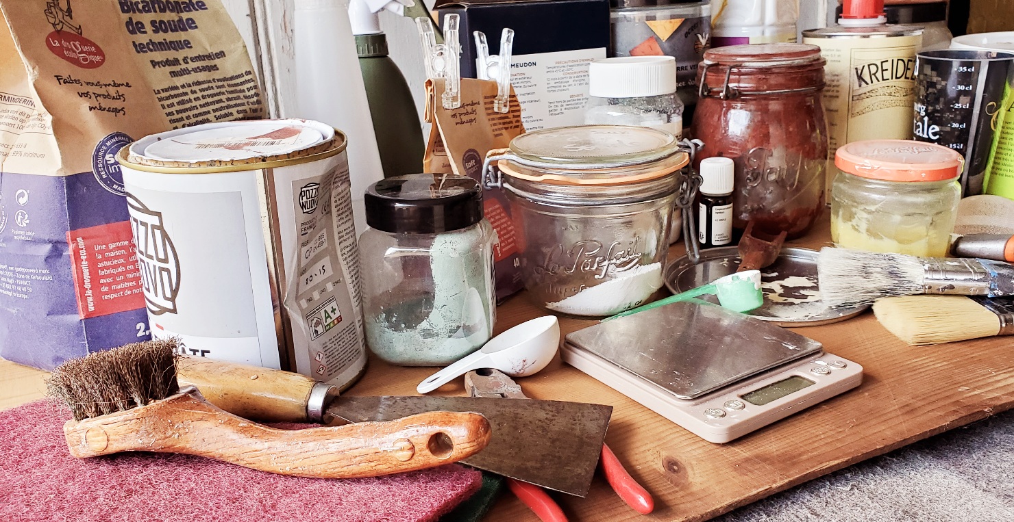 Pour aller au bout de ma démarche respectueuse de l’environnement, j’ai décidé d’utiliser des peintures naturelles que je fais moi-même.