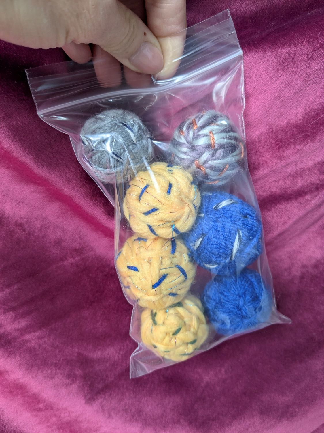 Tous ces articles sont faits main. J’oriente mes créations en fonction des matières et formes qui plaisent aux chats, et selon mes observations en tant que comportementaliste félin.