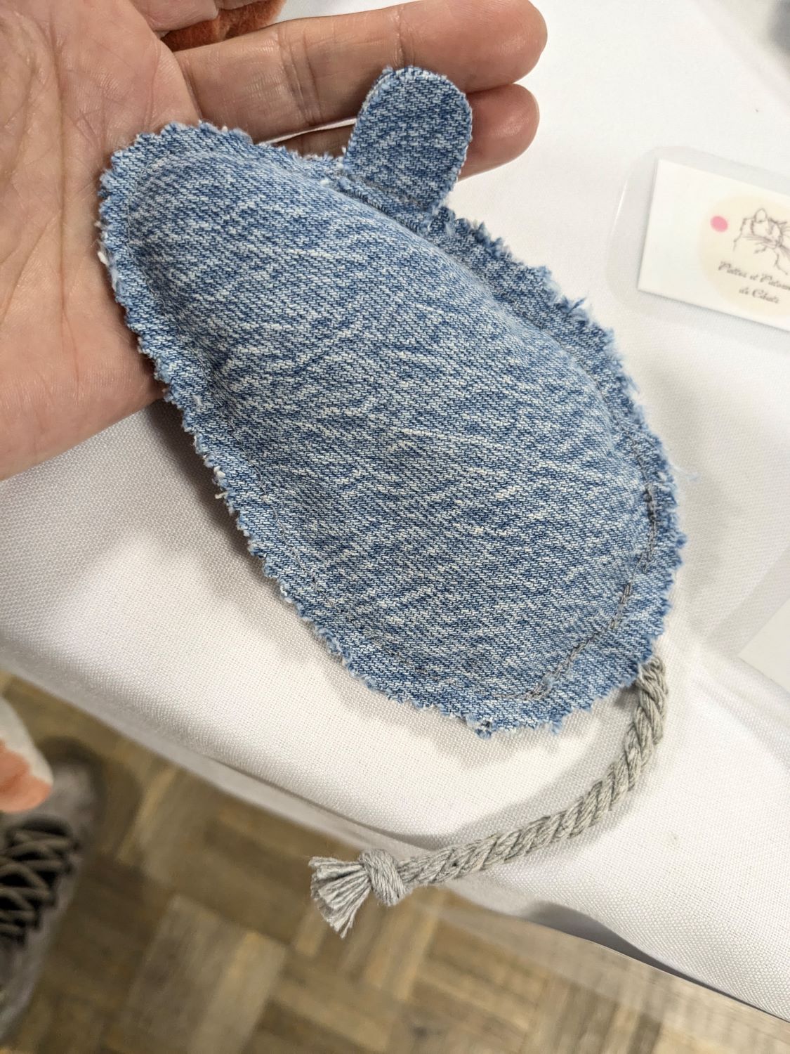 Chez Pattes et Patounes de Chats, vous trouverez des paniers d’osier avec coussins ou couvertures sur mesure, des coussins douillets, des cannes à pêche avec des plumes et des grelots, des balles de laine ou de corde, des jouets faits à partir de bobines de fil vides, de feutrine, des jouets cousus main en forme de souris, de cœurs, de poissons, certains agrémentés de valériane ou de cataire, des pots d’herbe à chats germée…