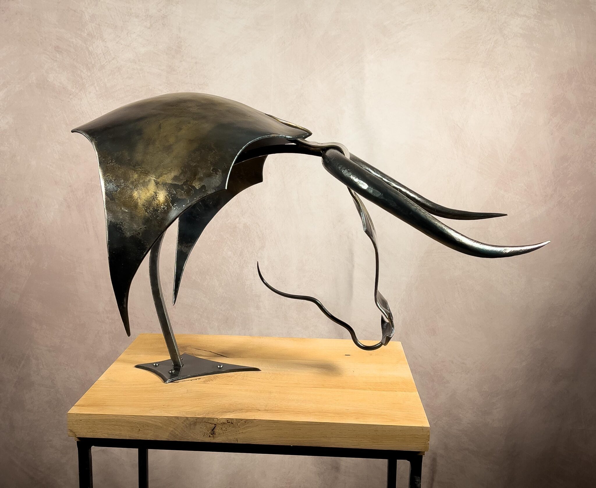 C’est en frappant le fer que j’ai trouvé ma voie. Maréchal-ferrant de métier, je découvre dans les années 2010 la magie de la forge. La première fois que j’ai vu le métal se plier à mes désirs et s’animer sous mon marteau, j’ai compris que je devais me consacrer entièrement à la sculpture. J’étais animé par un besoin viscérale de créer des œuvres vivantes, vibrantes et uniques.