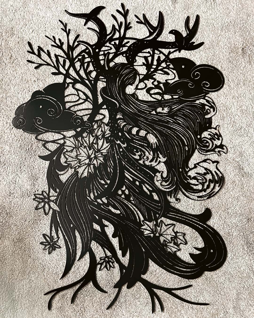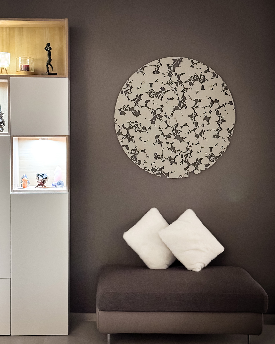 Pour donner vie à ces créations, nous utilisons différentes techniques : découpe laser sur acier ou aluminium, gravure CNC sur bois, stickers muraux pour vitres ou murs, découpe de panneaux acoustiques, peinture au pochoir sur meubles ou murs, ou encore impression sur portes, placards ou murs.