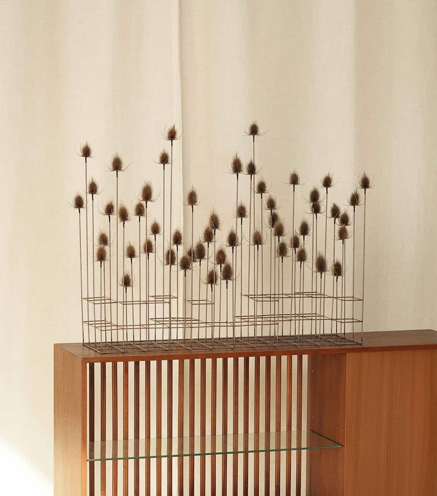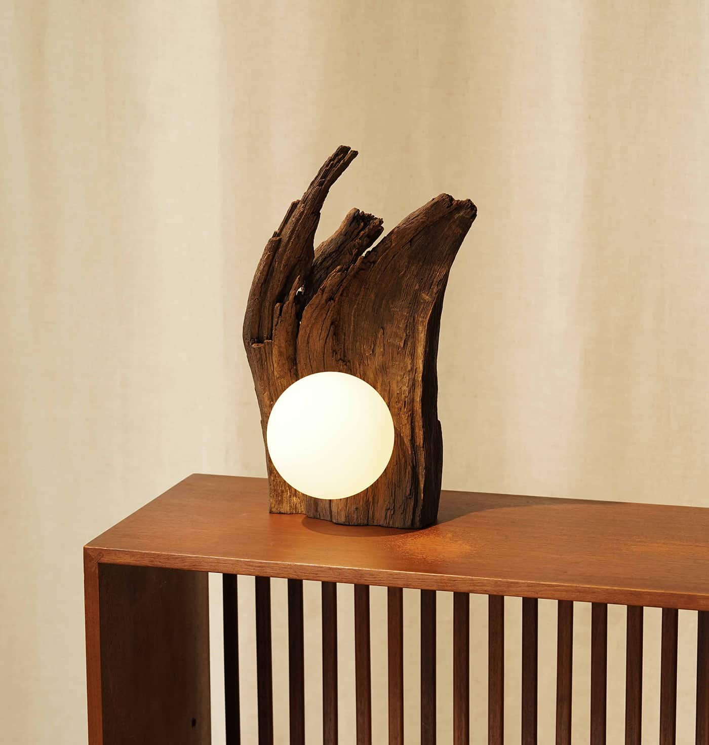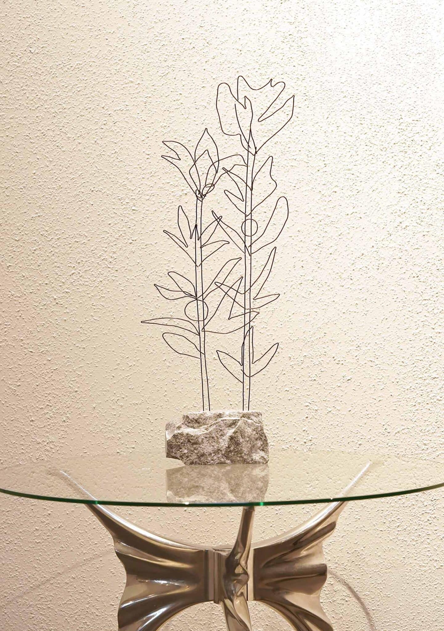 À travers des pièces uniques ou de petites séries, je conçois des œuvres à partir de métal, de bois, de pierre et d’éléments naturels stabilisés.