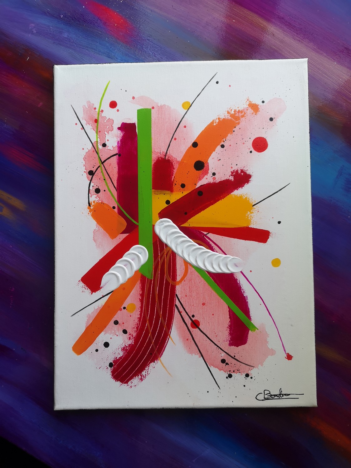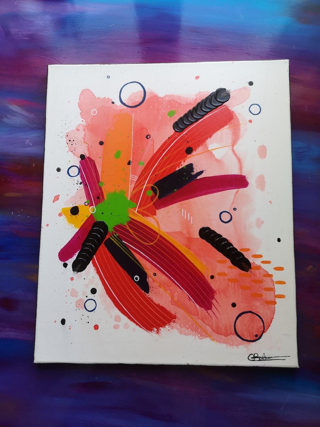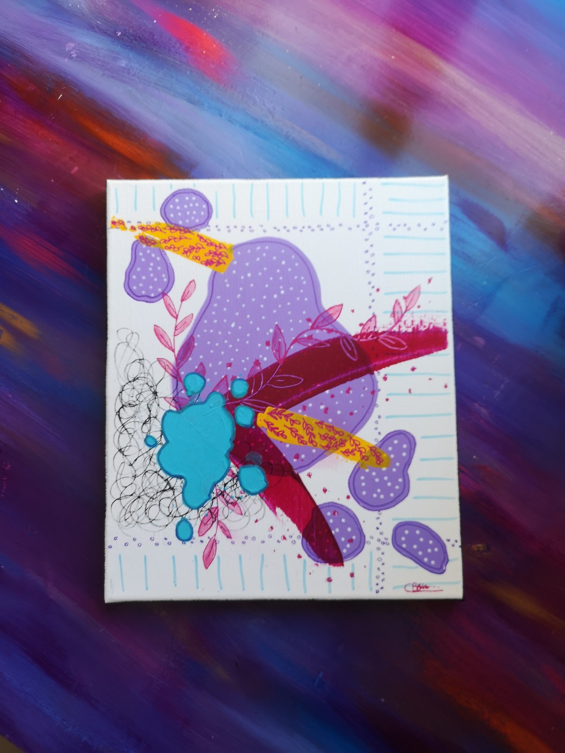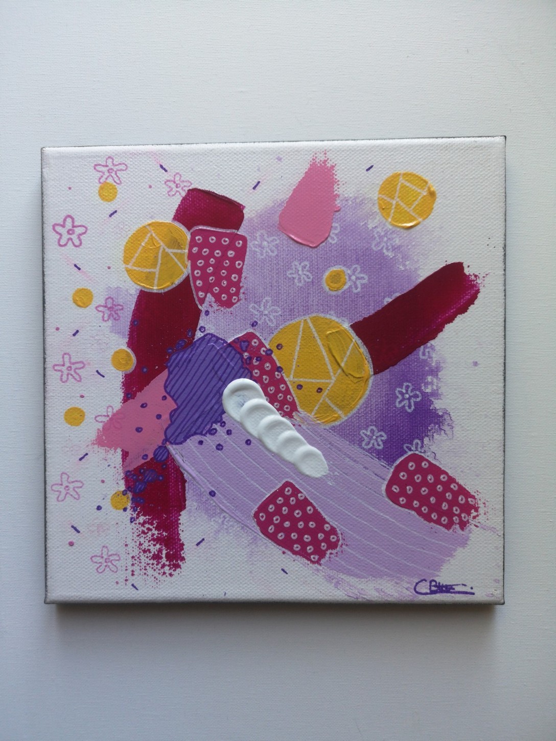 Artiste autodidacte: je fais de la peinture acrylique avec un style abstrait et joyeux où je représente des paysages émotionnels colorés. Mon style pourrait se rapprocher de l’abstraction lyrique mais remis au goût du jour, plus lumineux et plus contrasté.