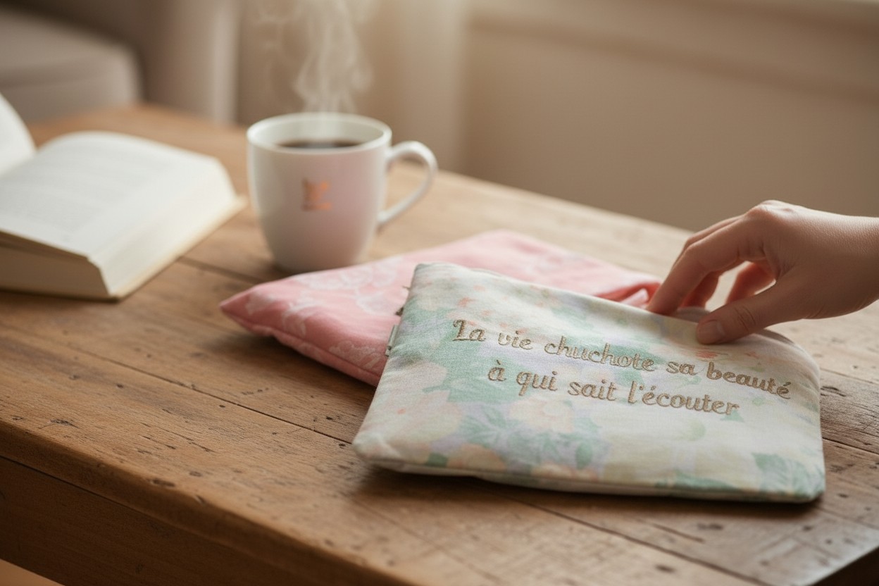 En plus de ces valeurs, j’aime énormément être en lien avec les personnes, partager mes créations et mes savoir-faire, prendre le temps de la rencontre. Je propose de nombreux ateliers de couture pour apprendre soi-même à valoriser un produit. Pour chaque commande, j’ai aussi des propositions de personnalisations infinies ! Grâce à ma brodeuse numérique, je peux ajouter un prénom, un motif ou une citation entière sur l’accessoire que vous souhaitez.